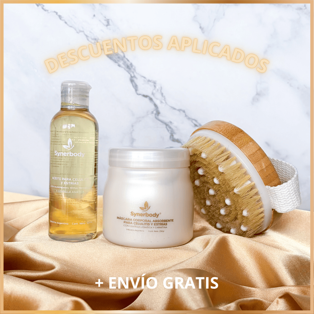 🔸 Gel ultrareafirmante modelador y reductor🔸 Masajeador Synerbody con sistema active-roll, rompe los adipocitos que ablanda la Crema para que sean eliminados por el sistema excretor. De uso manual sin esfuerzo en ducha, volviendo el hábito del masaje fácil de incorporar 🔸 Venda compresora elástica 10cm x 4mt: Comprime y evita flacidez junto a la acción de los productos. Hipoalergénica. Calidad premium. Reutilizables. Aumenta la microcirculación y potencia efecto antiinflamatorio. Disminuye edemas mientras los productos trabajan. Utilizar 15 minutos es suficiente.